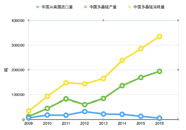 美国对中国的多晶硅出口,由2009年的6000多吨增加至2012年的3万2千多吨,国内一半以上多晶硅生产企业在2011至2012年间停产甚至破产。