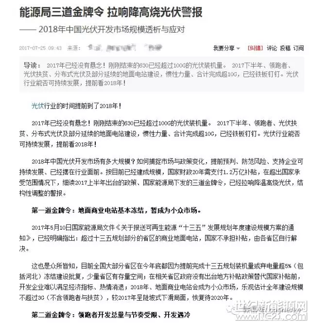以正视听,记者迅速请教了多位行业专家和同行,行业对此文判断基本一致——即这篇冠以“重磅”、“能源局”、“三道金牌令”、“给光伏产业降温”的文章,不仅难掩“标题党”之嫌,且多处出现对当前政策的误读,其论点逻辑混乱、主观臆断,经不住事实推敲。