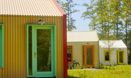 外墙材料为波纹钢,每栋住宅颜色不一,有漂亮的窗台。