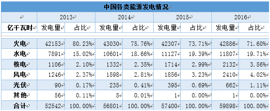 正是由于光伏成本的逐年下降——组件价格从2008年到至今已下降90%,使得其平价上网得以开始成为现实。从上图来看,从2013-2016年,在国内所有的能源装机容量中,光伏的增长是最快的,增长了7倍,而风电和核电仅实现翻倍增长。