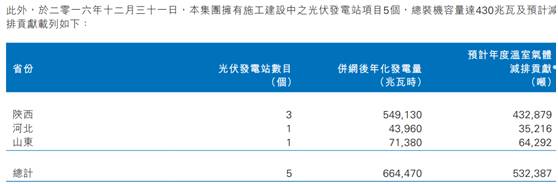智通财经同样在2016年年报中发现,公司当时在建发电项目容量是430兆瓦,即使不算新增项目,公司在建仍有220兆瓦装机容量。
