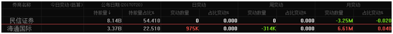 再从最近的资金的流入流出情况来看。如下图,民信证券和海通国际席位占据总持股的76.92%。