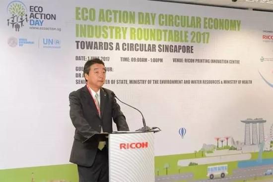 理光亚太区总经理后藤和久先生,在理光亚太发起的“6.1”生态行动日这天举办的循环经济产业圆桌会议上向新加坡环境与水资源部兼卫生部高级政务部长许连碹(AmyKhor)、与会嘉宾、当地媒体分享了这一倡议计划。