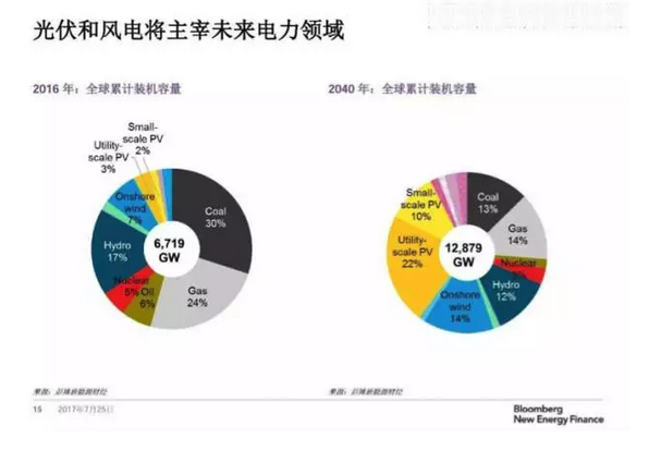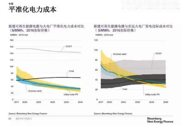 彭博分析师表示,“未来光伏、风电的成本会更低,新建电厂会被取消,一半以上为清洁能源,其中39%的能源生产来自风电、光伏等清洁能源;2020年能源价格将达到平均值,火电的平均利用小时将下降,可再生能源平均利用小时会增长。”