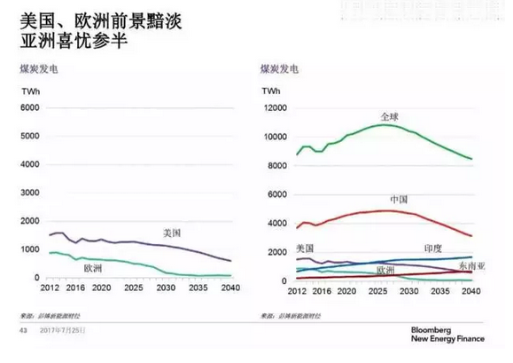 彭博分析师表示,“2026年中国煤电将会达到峰值,2030年-2040年大型太阳能、风电等可再生能源市场会有大的提高,成本会降低;2025年无法让煤炭停止增长,仍需要几百兆瓦淘汰,2030年煤炭能源系数下降,一次能源将达到25%”。