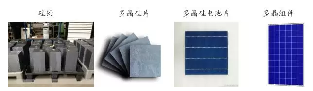 从最上游的原材料到最终的光伏组件产品,需要经过多晶硅料、硅锭/硅棒、光伏电池片、光伏组件等四个环节。现在我们就介绍了解一下这四个环节,以便描绘出光伏产业全景图。