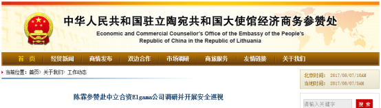 近日,中国驻立陶宛经商参处近日在官网上发布消息,驻立陶宛使馆经商处陈霖参赞一行赴中立合资公司ELGAMA-ELEKTRonIKA Ltd.调研并开展安全巡视。公司中方董事俞辉,外方董事GEDIMINAS EIDZIUNAS陪同参观了公司生产车间、实验室以及运营部门,介绍了公司安全防范措施、ELGAMA公司和中国投资方江苏林洋能源股份有限公司(SH.601222)的发展历史和运营情况,以及中立双方的合作背景和发展情况。