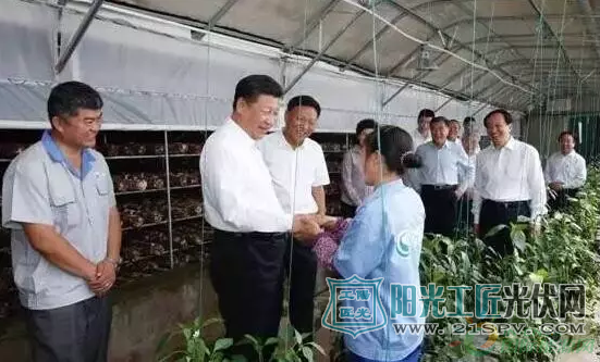 2016年7月19日,在宁夏考察的习近平总书记走访了永宁县闽宁镇原隆移民村的光伏农业科技大棚,了解当地通过产业扶贫、帮助贫困户脱贫的情况。