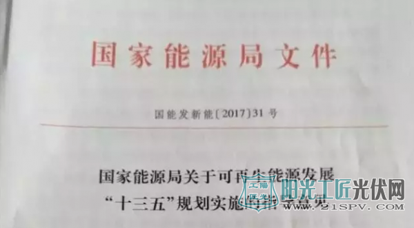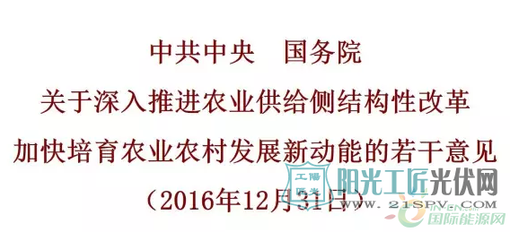 2017年 2月5日,中共中央、国务院公开发布《关于深入推进农业供给侧结构性改革加快培育农业农村发展新动能的若干意见》,指出:要大力推行高效生态循环的种养模式,加快畜禽粪便集中处理,推动规模化大型沼气健康发展。深入推进绿色高产高效创建,重点推广优质专用品种和节本降耗、循环利用技术模式。因地制宜推进平原地区农村机井油改电。推进农业废弃物资源化利用试点。实施农村新能源行动,推进光伏发电,逐步扩大农村电力、燃气和清洁型煤供给。四、国家能源局及相关部委出台多项政策支持光伏发展2017年,国家能源局及相关部委出台了不少政策指导和支持光伏产业的持续健康发展。举几个例子:今年7月底,国家能源局出台《关于可再生能源发展“十三五”规划实施的指导意见》,对“十三五”期间2017-2020年的光伏发展规模进行了规划,总计86.5GW,领跑者基地每年8GW;2017-2020年分年度光伏指标出炉。
