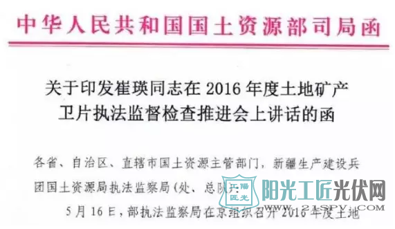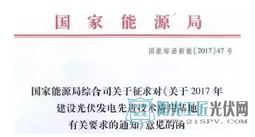 2017年5月底,国家能源局发文启动2017年领跑者计划及基地实施并征求业内意见。2017年5月,在国土资源部2016年度土地矿产卫片执法监督检查工作推进会上,执法监察局局长崔瑛的一个讲话中提及了光伏项目用地问题,“部有关司局正在研究完善光伏项目用地政策,可能涉及政策调整。在新的政策出台之前,暂时不在土地卫片检查信息系统中填报