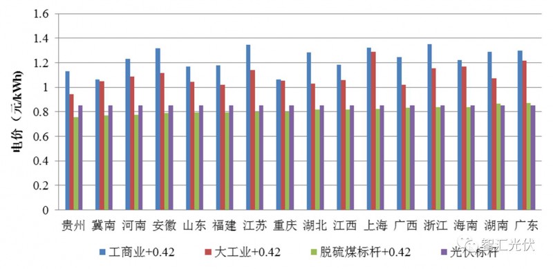 可以看出, “工商业+0.42”比0.65元/kWh高0.29~0.61元/kWh