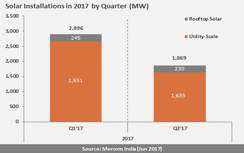 索比光伏网讯:根据Mercom印度研究公司,2017年上半年印度新增4765兆瓦太阳能容量,并且正在实现全年10500兆瓦新增光伏电站的目标。