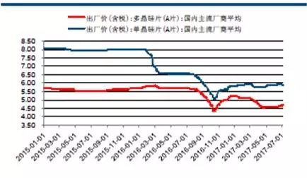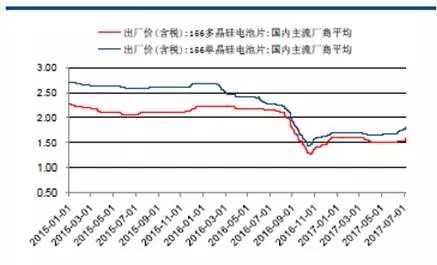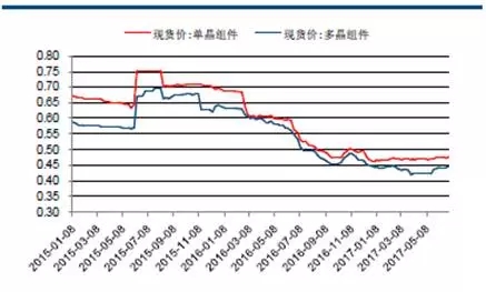 去年底发改委下达了《国家发展改革委关于调整光伏发电陆上风电标杆上网电价的通知》,在今年6月30日之后,将I至III类资源区新建光伏电站的标杆上网电价分别调整为每千瓦时0.65元、0.75元、0.85元,比2016年电价每千瓦时下调0.15元、0.13元、0.13元。此前市场普遍认为,6.30之前的抢装将透支三季度的装机需求,光伏产业链的价格或将跟去年三季度一样出现深度调整,但今年观测到价格信号有所不同。