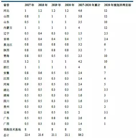 1)17-20年光伏电站累计规模86.5GW,年均指标规模21.6GW,每年包含8GW领跑者项目,其中17年指标22.4GW。