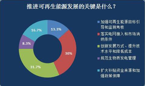另外,还有16.7%的受访者认为,扩大补贴资金来源和加强政策保障是推进可再生能源发展的关键因素。
