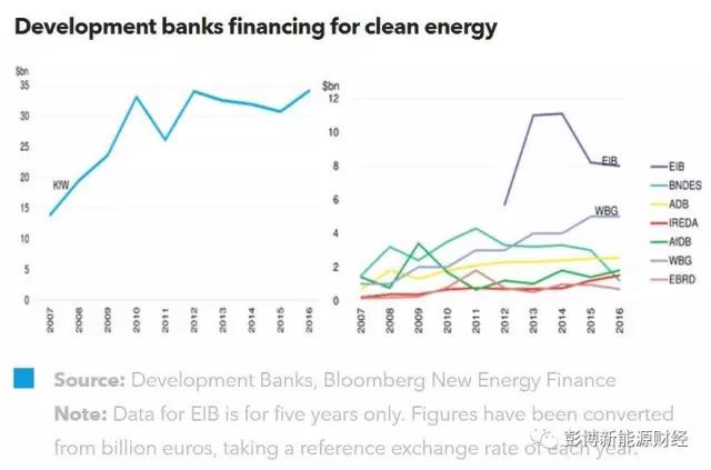 2016年,德国复兴信贷银行的清洁能源和能源效率投资仍超过全球其他银行,位居榜首,欧洲投资银行和世界银行集团则分别名列第二、第三名。