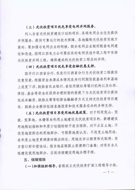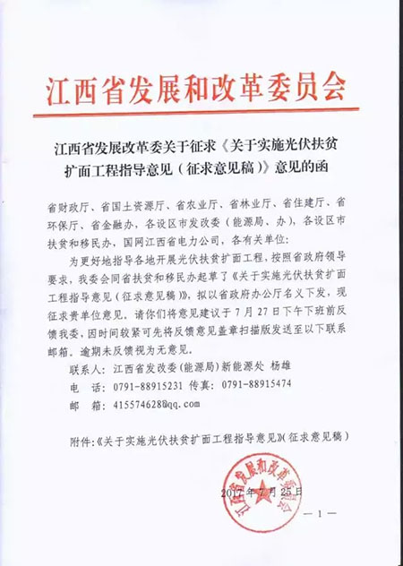 索比光伏网讯:近日,江西省发改委印发《关于实施光伏扶贫扩面工程的指导意见(征求建议稿)》意见的函,意见明确指出加大光伏扶贫多项优先支持政策。