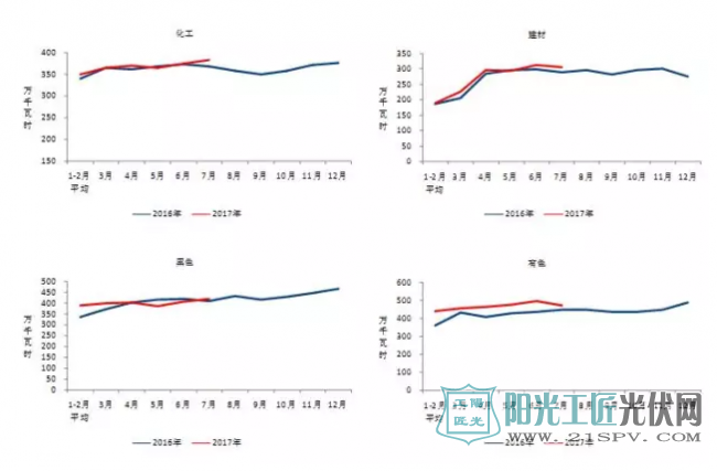图4 2016、2017年重点行业分月用电量情况