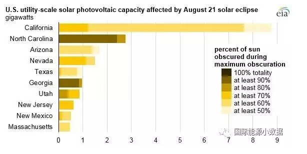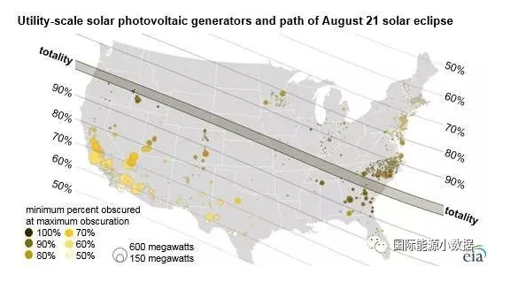 日食除了带来了旅游热以外,还受到电力部门的密切关注,因为日食将造成光伏电站的发电能力在短时间内下降甚至消失,对于电网的稳定带来压力。由于美国光伏比例仍然很小,所以美国电网的稳定性不会受到大的影响。但是,美国电力监管机构和各电网运行商抓住难得的机会进行实兵演练。受到日食影响最大的是加利福尼亚州,电网运行商已经做好准备安排6000兆瓦的天然气、水电电源,填补因为日食失去的光伏出力。