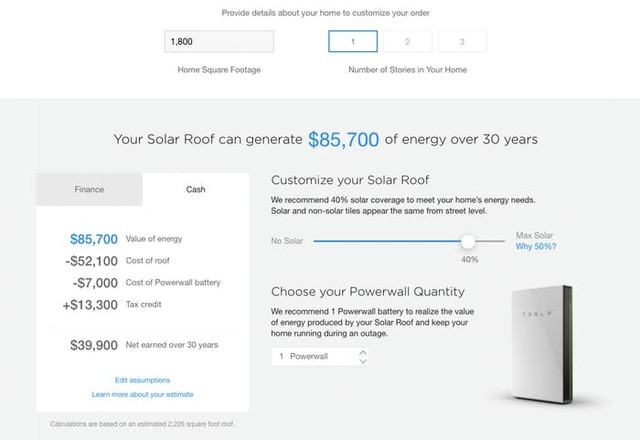 Inverse网站用特斯拉在线计算器计算得出,在房屋寿命30年内,太阳能屋顶为这栋房子产生的能量价值近8万6千美元。