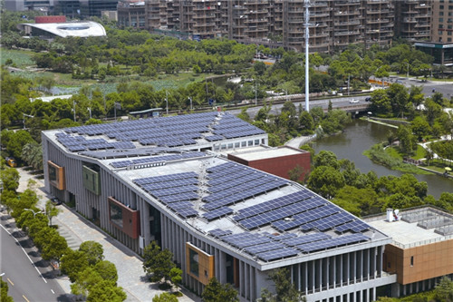 图为龙湾区市民活动中心房顶的光伏发电项目。王诚/摄