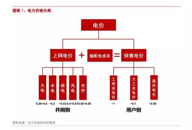 我国的销售电价分为三类:工商业电价,一般在 1 元/kWh 左右;大工业电价,一般在 0.6~0.9 元/kWh 之间;居民和农业售电电价,由于享受国家的交叉补贴,价格较低。