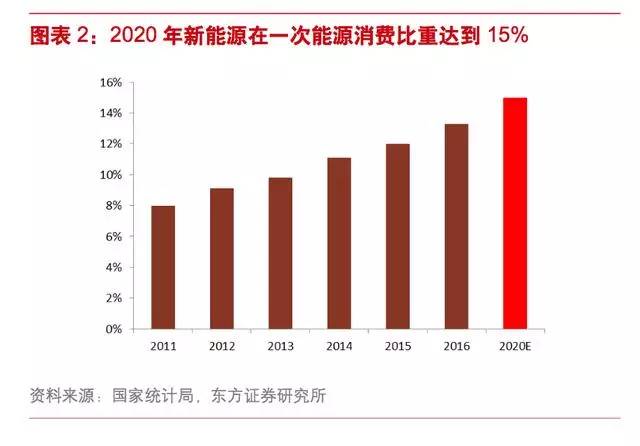 根据《能源发展“十三五”规划》要求,到 2020 年可再生能源占整体能源消费比重将不低于 15%。