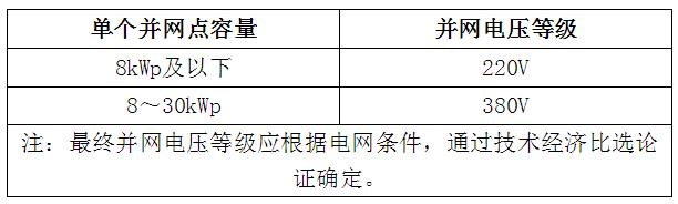 5.2.3 并网点容量8~30kWp推荐采用380V接入。