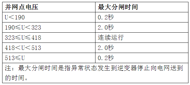 表4 家庭屋顶光伏逆变器在电网电压异常时的响应要求(380V)