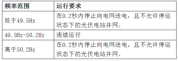 6.3.9 接入电网的家庭屋顶光伏电源并网点处频率异常时,逆变器的响应要求见表6。