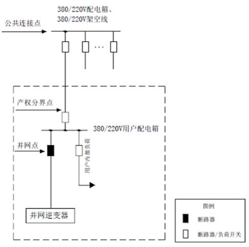 5.1.4 家庭屋顶光伏接入系统方案应明确用户隔离闸刀、并网开关、并网点等位置,并对接入家庭屋顶光伏的配电线路载流量、配变容量进行校核。