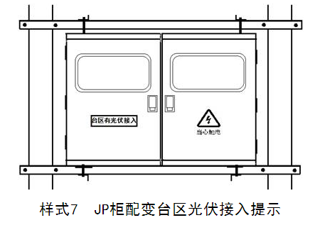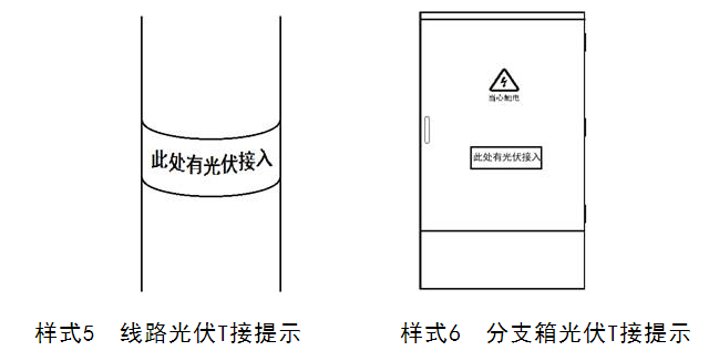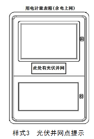 6.3.10 家庭屋顶光伏并网的公共连接点、发电计量箱和用户计量箱等位置应设置电源接入安全标识。安全标识应采用提示性文字和符号。标识的形状、颜色、尺寸和高度应符合GB 2894《安全标志及其使用导则》的相关要求,见(附录C)