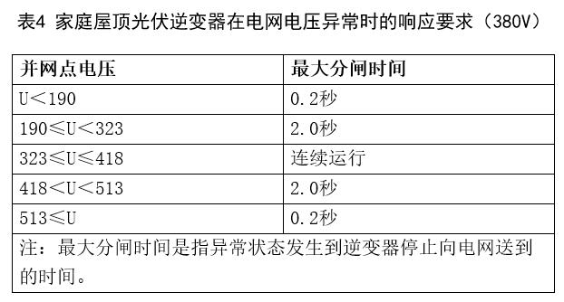 表4家庭屋顶光伏逆变器在电网电压异常时的响应要求(380V)
