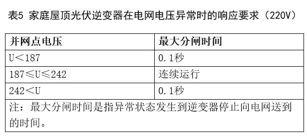表5家庭屋顶光伏逆变器在电网电压异常时的响应要求(220V)