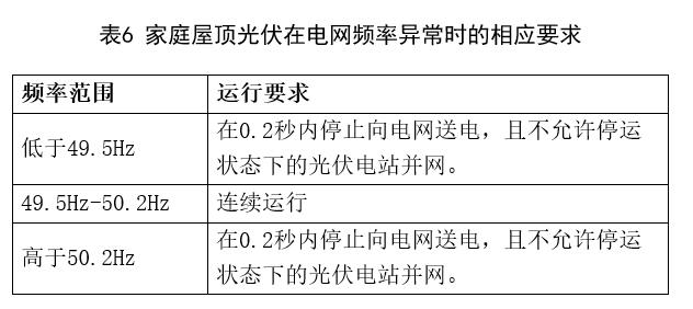 表6家庭屋顶光伏在电网频率异常时的相应要求