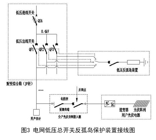 低压反孤岛装置主要用于220/380V电网中,一般安装在光伏发电系统送出线路电网侧,如配变低压侧母线、箱变母线等处,在电力人员检修与光伏发电系统相关的线路或设备时使用。