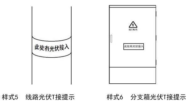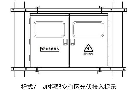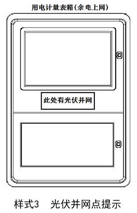 6.3.10家庭屋顶光伏并网的公共连接点、发电计量箱和用户计量箱等位置应设置电源接入安全标识。安全标识应采用提示性文字和符号。标识的形状、颜色、尺寸和高度应符合GB2894《安全标志及其使用导则》的相关要求,见(附录C)
