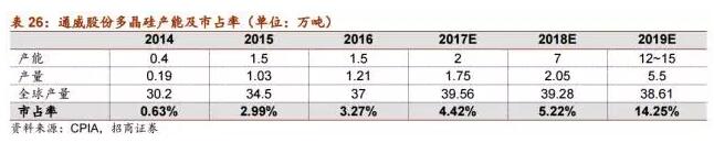 目前,通威计划的多晶硅产量已经达到12万吨(目前产能2万吨,预计投入160亿扩产10万吨),预计完全达产后,其市占率能够达到30%。