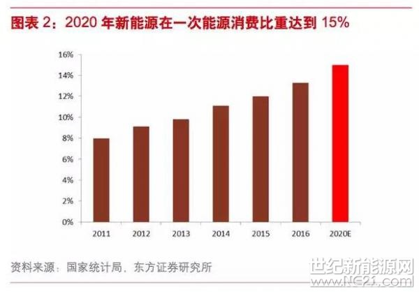 根据《能源发展“十三五”规划》要求,到2020年可再生能源占整体能源消费比重将不低于15%。