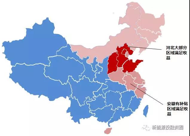 通过查询各省大工业用电及商业用电可以看出,津京冀、山东、浙江、江苏、上海、安徽、河南、湖南、广东、海南等电价相对较高,都是比较适合做自发自用、余电上网类项目的,收益地图见下图。
