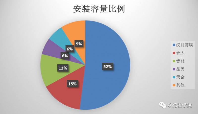 根据电网公司提供的数据,当地光伏组件主要以汉能为主,占比52%左右,主要是因为汉能在当地的市场份额较大;其次为合大和晋能,分别占比15%和12%。