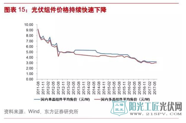 同时,随着光伏发电行业规模化效应的凸显和光伏组件行业激烈的市场竞争,光伏系统装机成本明显下降。