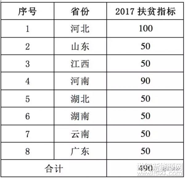 7月19日,国家能源局发布的《2017-2020年光伏电站新增建设规模方案》中,提出:河北、山东、河南、江西、湖南、湖北、云南、广东等提前使用2017年建设规模超过50万的省份新增建设规模全部用于建设光伏扶贫电站。