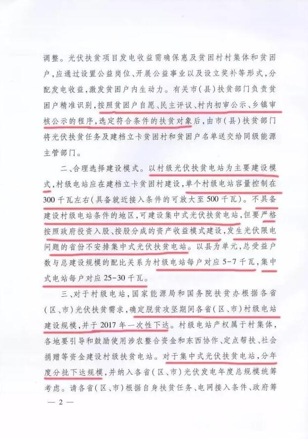 2、以村级光伏扶贫电站为主要建设模式;不具备建设村级电站条件的地区,可建设集中式光伏扶贫电站;发生光伏限电问题的省份不安排集中式光伏扶贫电站。