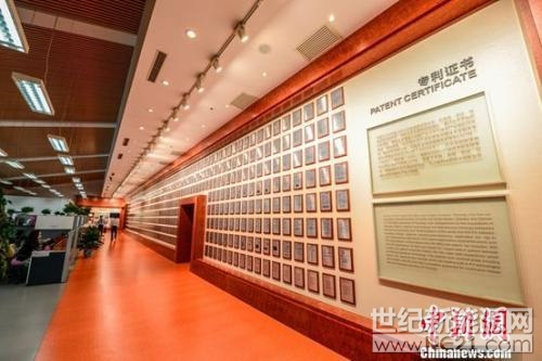 汉能北京总部办公室内的专利证书墙。中新网记者富宇摄