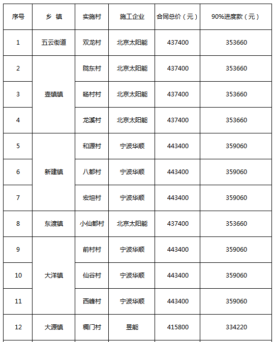 根据《关于下达“光伏助村”实施项目的通知》(缙农〔2017〕5号)精神,以及各乡镇与中标施工作业单位签订的合同条款约定,目前止20个村项目主体工程已全部完成,现将拟拨付五云街道双龙村等20个“光伏助村”项目进度款进行公示,公示期5天,2017年8月24日—2017年8月28日。如有异议,请与县农业局联系,联系电话:3015060。
