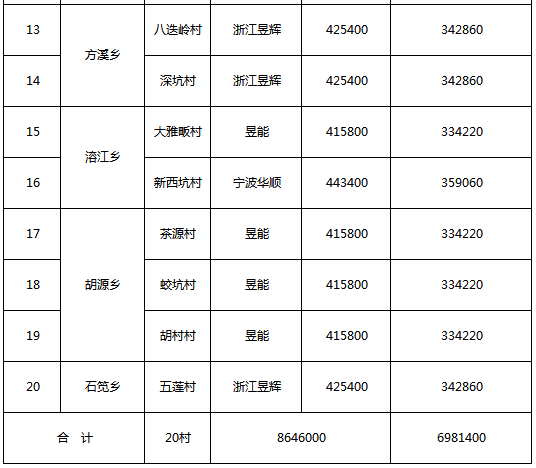 附:缙云县拟拨付“光伏助村”项目进度款清单
