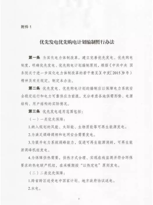 其中《优先发电优先购电计划编制暂行办法》指出,优先发电适用范围包括: