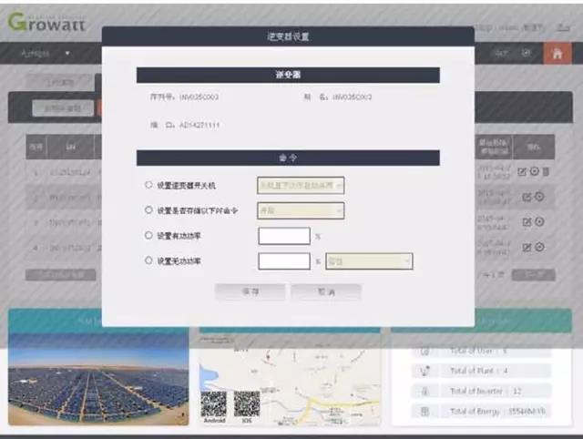 进入网站监控帐号—设备管理—逆变器列表,选择需要调整的逆变器,点击设置,逆变器产生的无功有容性和感性两种,调整前先测试一下工厂的功率因素情况,电动机或者电焊机比较多的工厂,感性负载多,电流的相位滞后于电压,需要补入超前容性无功。再根据工厂实际的功率因素值调整逆变器的功率因素,不能调得太低,若设定的定值功率因数较低,则在负荷较低的情况下,将引起无功功率倒送。