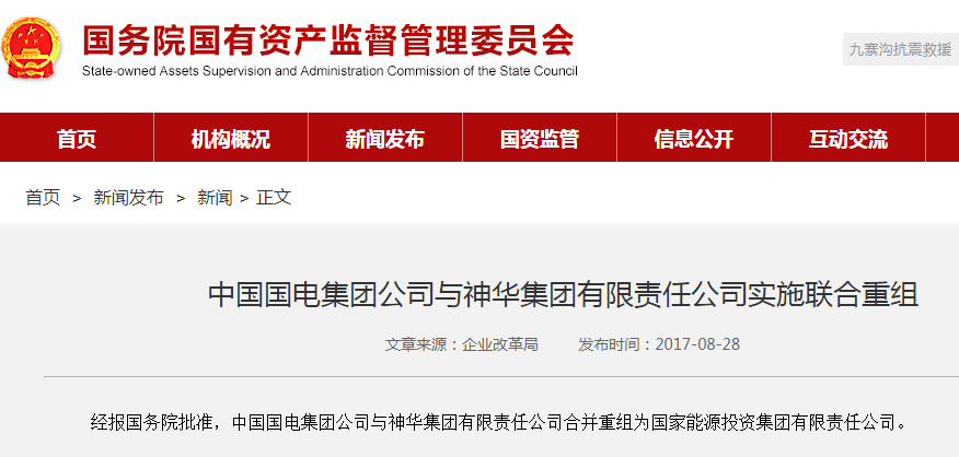 此前,中国神华与国电电力同日发布公告称公司于2017年6月2日接到控股股东神华集团有限责任公司通知,获悉其拟筹划涉及本公司的重大事项,该事项存在重大不确定性,尚需获得有关主管部门批准。为避免造成公司股价异常波动,经公司申请,公司A股股票自2017年6月5日起停牌。
